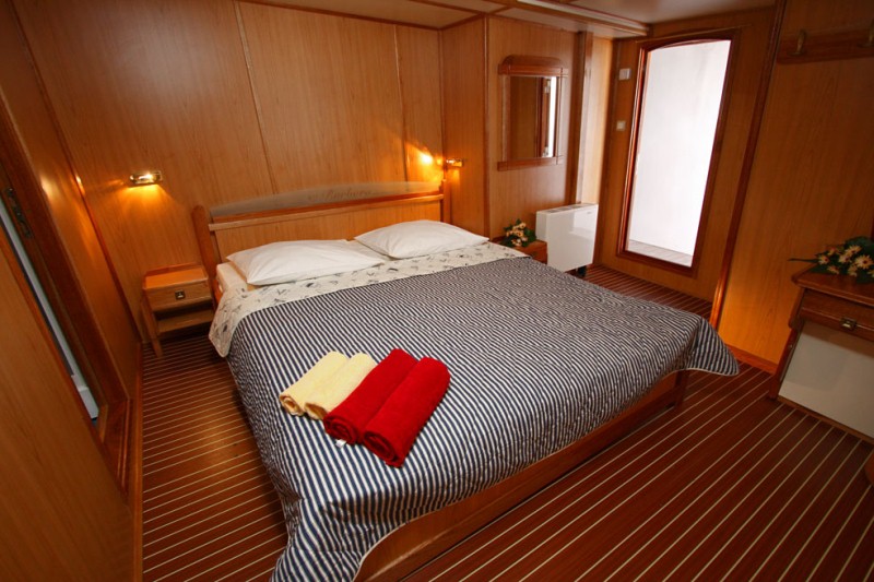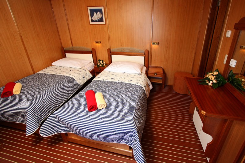 Cabin Details: 16 Cabins; 6 Twin cabins, 10 Double bed cabins, 3 of them has an extra single bed.