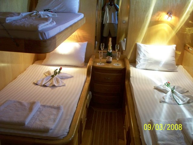Cabin Details: 7 Cabins; 1 Master, 2 Cabins (with two beds), 4 Cabins (with three beds). All cabins include shower and wc.