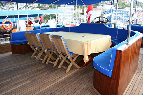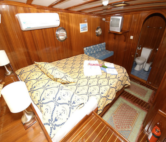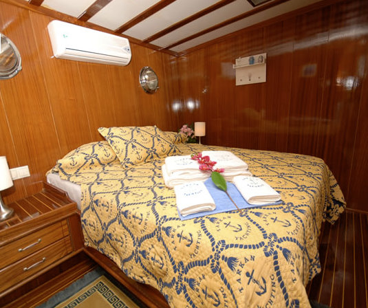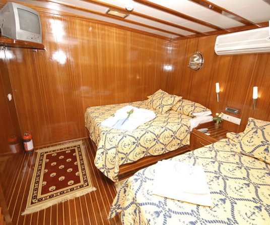 Cabin Details: 8 Cabins; 6 double and 2 with a double bed and a single bed. All cabins are equipped with air conditioning, radio-cd-mp3, TV-DVD, shower, WC, lavabo and air-dryer.